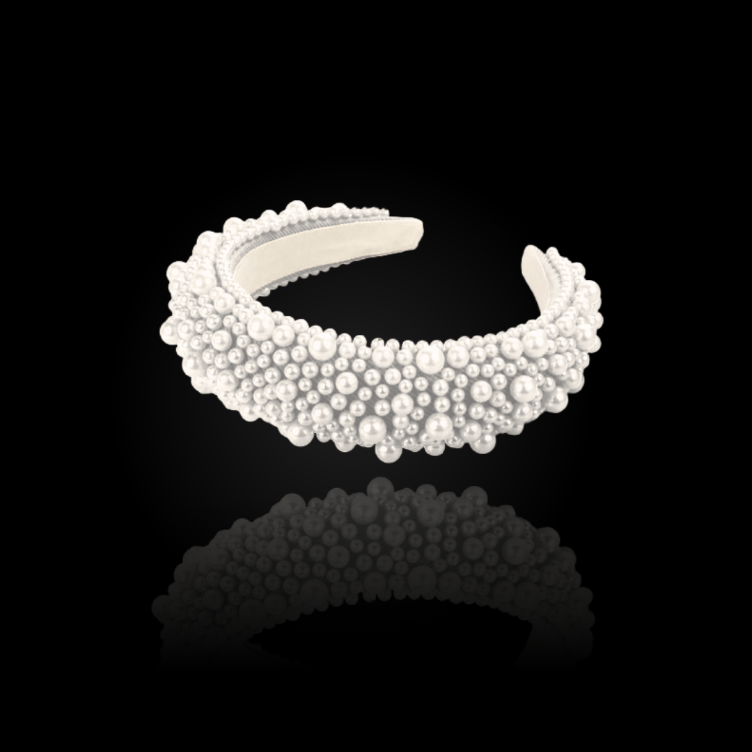 Cerchietto per capelli imbottito in stile barocco, decorato con perle in rilievo e dettagli eleganti. Dona volume e luminosità all’acconciatura, senza rinunciare alla comodità grazie alla base in spugna rivestita. Perfetta per outfit da cerimonia, eventi speciali o per impreziosire un look quotidiano con un twist glam.